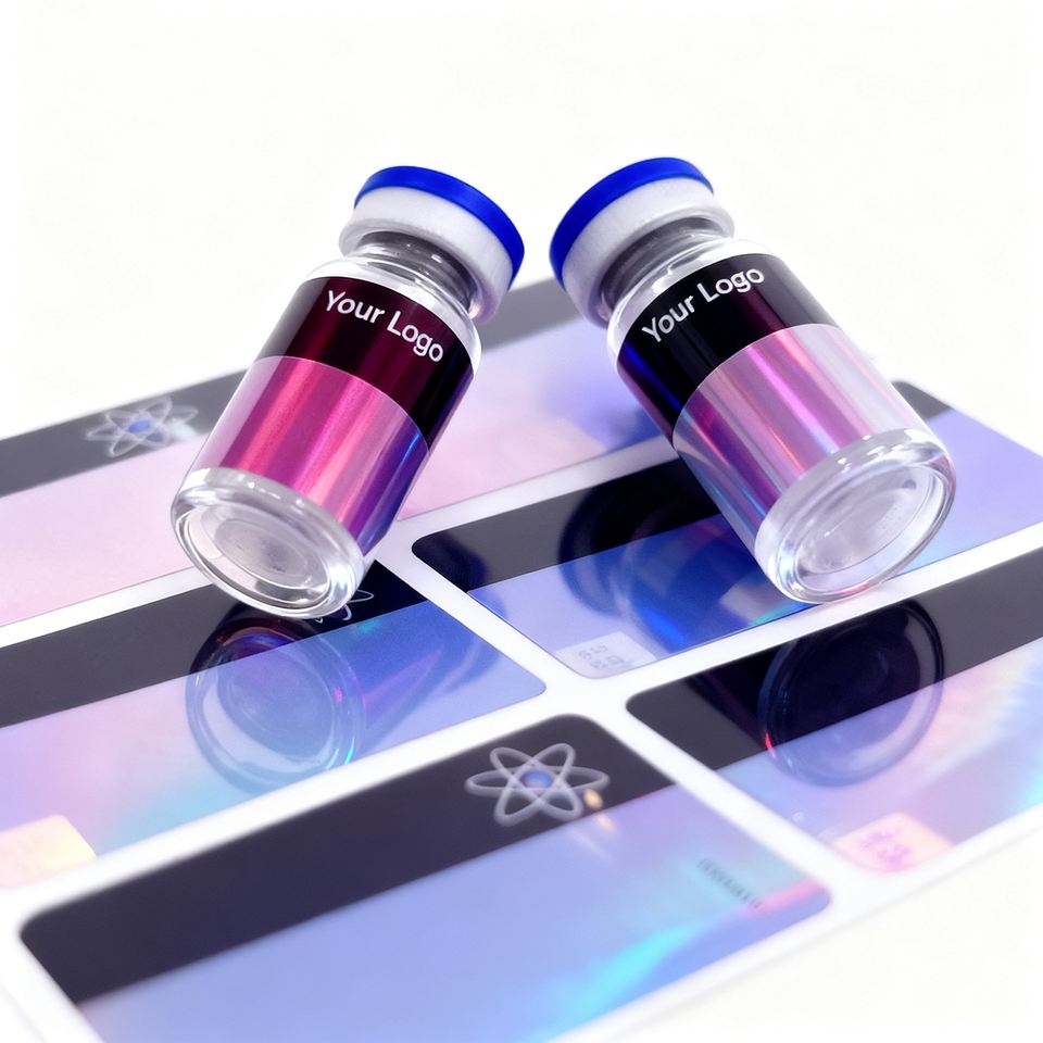 Étiquettes et boîtes d'autocollants pour flacons de 3 ml et 10 ml, en PET, anti-contrefaçon, écologiques, pour laboratoires pharmaceutiques personnalisés, à usage pharmaceutique, avec hologramme.