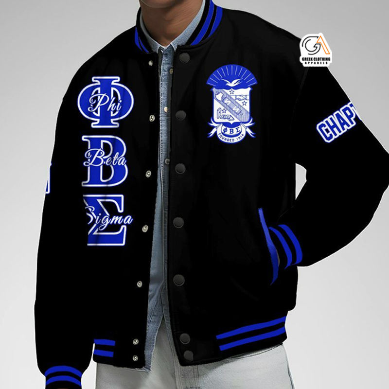 Veste universitaire sur mesure en feutre mélangé à la laine, broderie appliquée de haute qualité, fabrication sur mesure Phi Beta Sigma