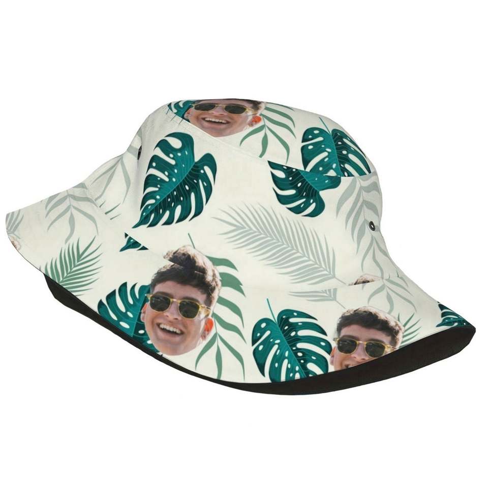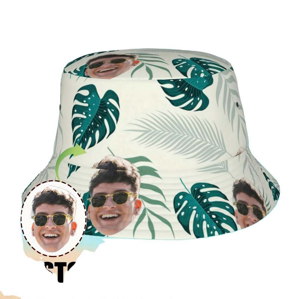 Casquette Bob Personnalisée avec Photo, Motif Feuille Tropicale, Idéale pour l'Été, les Voyages et la Pêche, pour Hommes et Femmes, Motif Dessin Animé