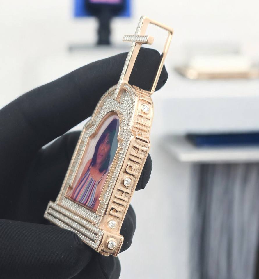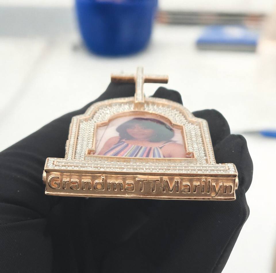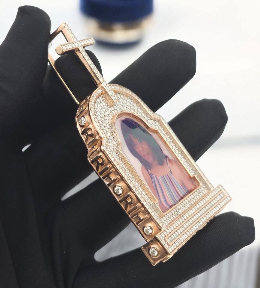 Pendentif Croix Personnalisé avec Photo, Moissanite Glacée, Bijoux Hip Hop, Or Rose, Pièce Commémorative, Design de Luxe