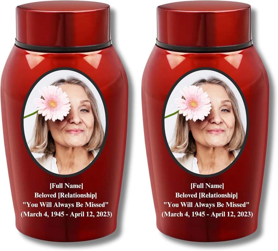 Photo personnalisée Petites urnes personnalisées pour cendres humaines Urnes souvenir en acier inoxydable pour la crémation commémorative Urne rouge de taille personnalisée