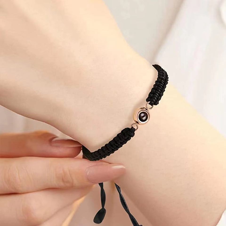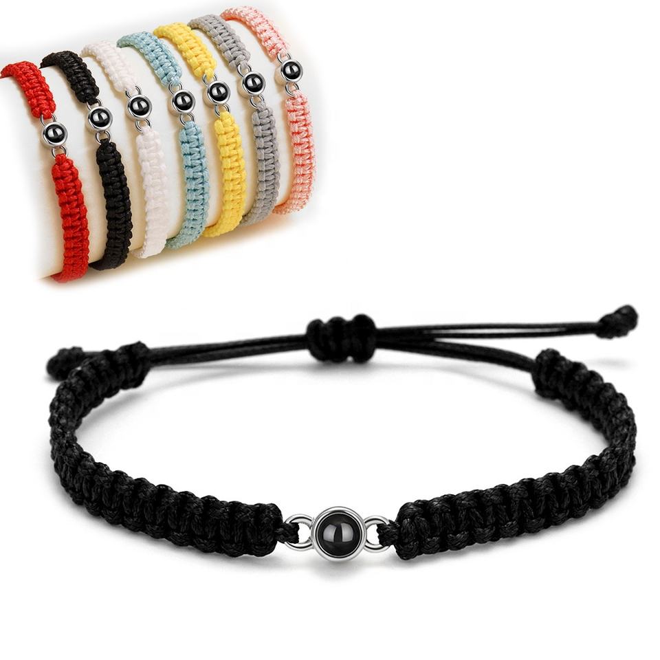CTT Bracelet projection photo personnalisé "I love you in 100 languages" 16+3/18+3 cm corde tressée (nylon/polyester), pierre artificielle, alliage UV env.10 g
