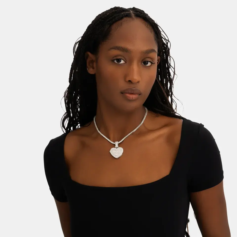 Collier avec pendentif en forme de cœur avec photo personnalisée, diamant, avec revêtement anti-ternissement, 26x30mm, 15g, pour femmes