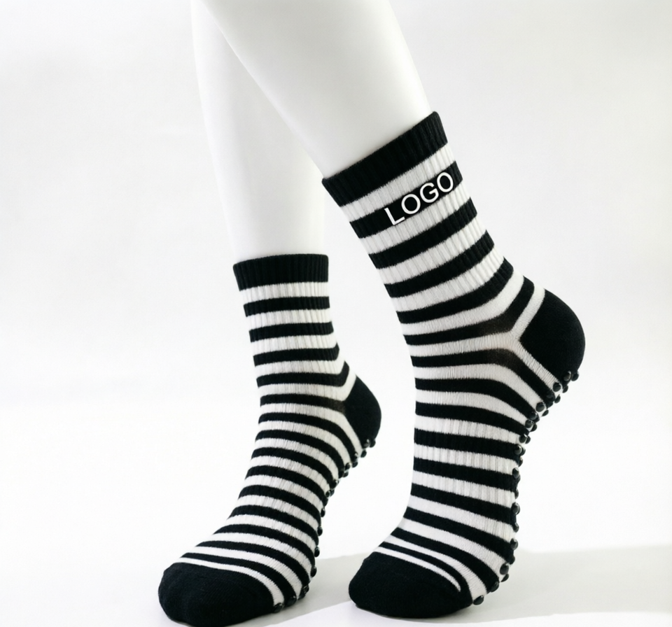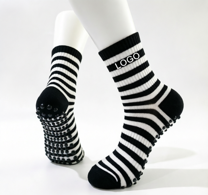 Chaussettes de Pilates personnalisées antidérapantes pour le yoga, le ballet et la barre, chaussettes de sport épaisses à rayures tricotées pour femmes, idéales pour les studios et les événements.