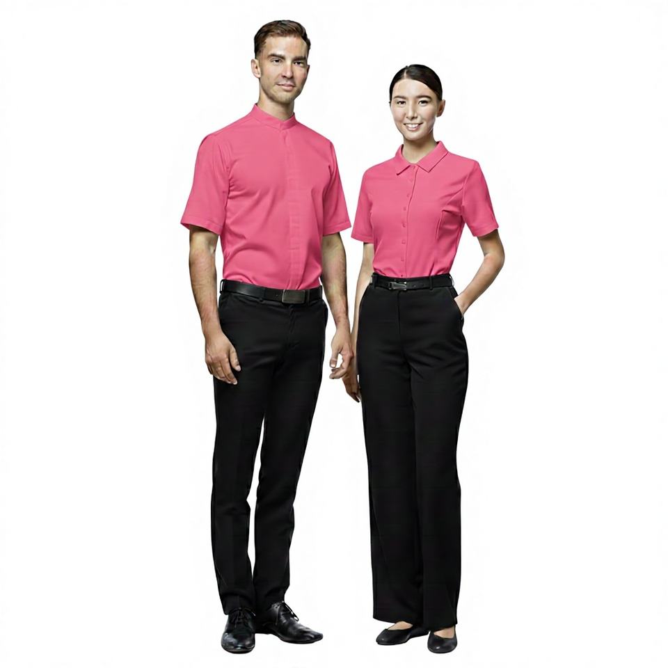 Ensemble d'uniformes professionnels personnalisés roses pour hommes et femmes, tenue de travail formelle pour la réception d'hôtel, en nylon respirant et léger, service OEM
