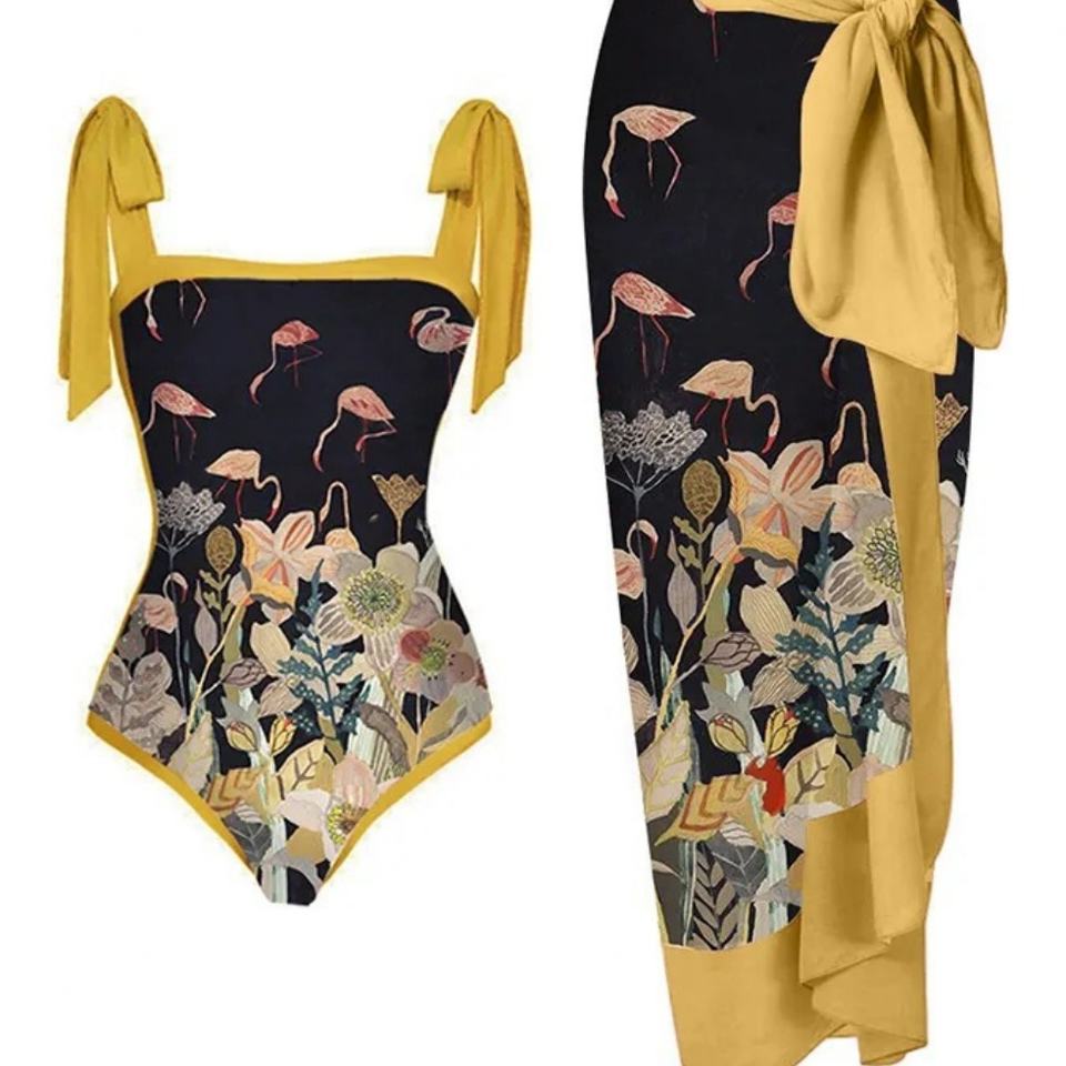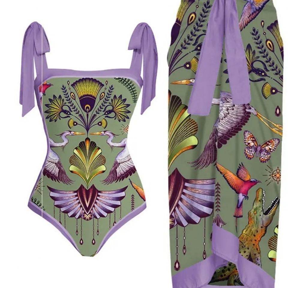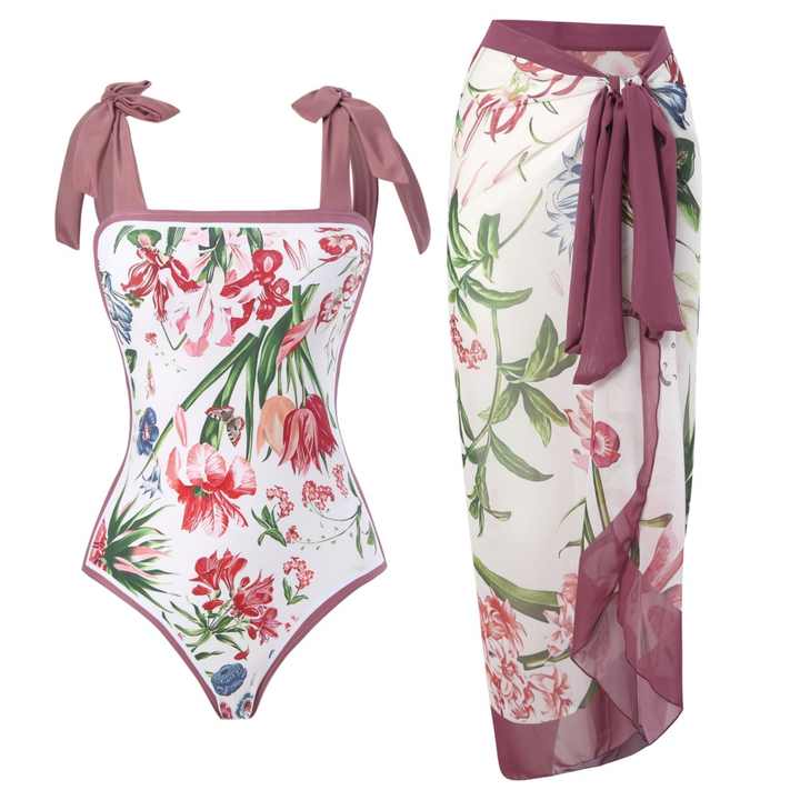 Ensemble de maillot de bain 2 pièces personnalisé avec imprimé floral rose et dentelle, jupe de plage taille haute pour femme