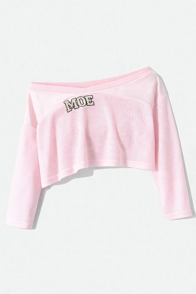 Haut court rose personnalisé en maille à épaules dénudées pour femme, maillot de sport Y2K à manches longues, style streetwear, maillot de football américain, vente en gros