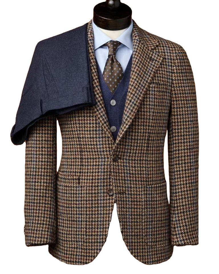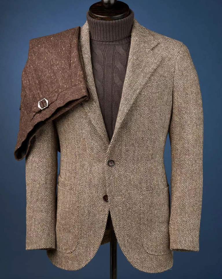 Tweed à carreaux personnalisé costume trois pièces pour hommes costume pour hommes marron formel 3 pièces Slim Fit pointe revers doux mariage garçons d'honneur Blazer