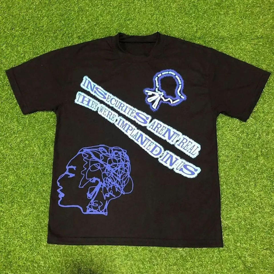 T-shirt personnalisé à col en O pour hommes de haute qualité 100% coton respirant noir Jersey lettre motif uni High Street T-shirts tricotés
