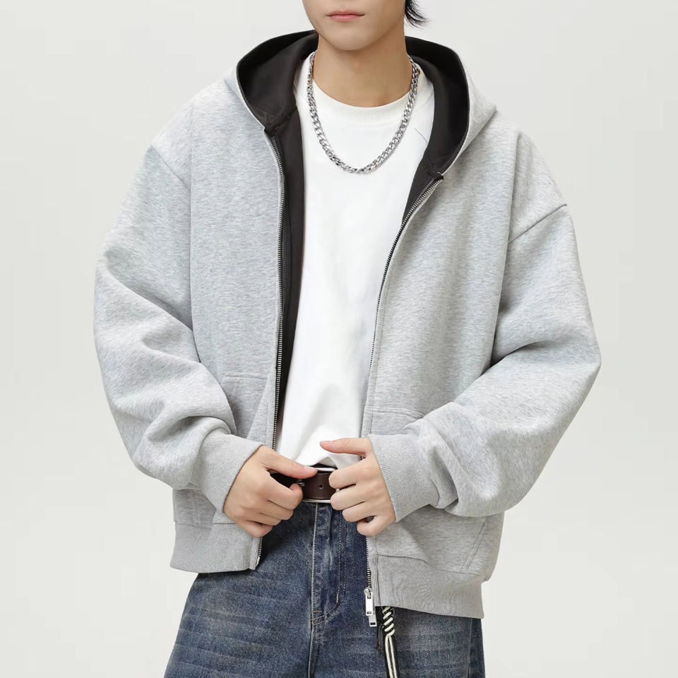 Veste unisexe à double couche, ample et réversible, à fermeture éclair double, sweat à capuche zippé pour homme, lavé