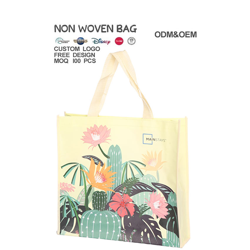 Sac de marché non tissé à motif végétal personnalisé Sacs à provisions recyclables de l'usine d'exposition Fournisseur direct au prix d'usine