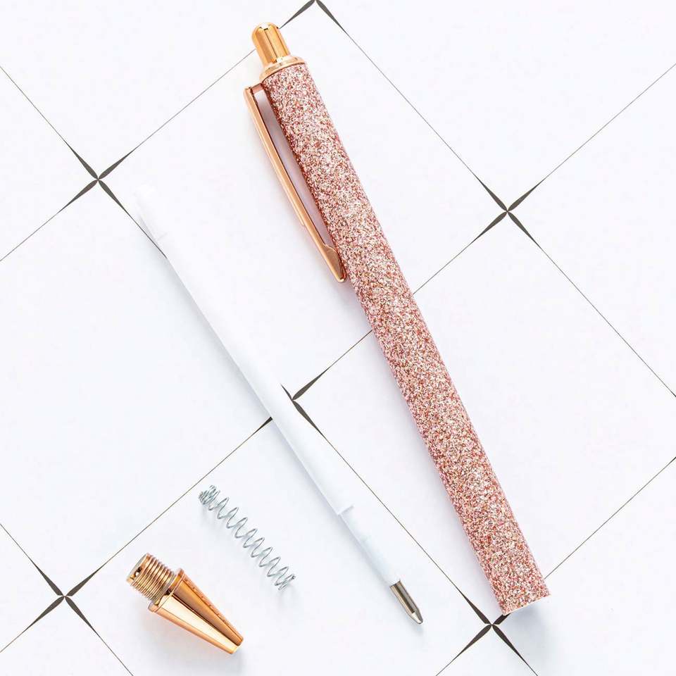 Stylos à bille rétractables en plastique personnalisés avec paillettes pour filles et femmes, encre noire, pointe moyenne, impression UV, cadeaux décoratifs lisses