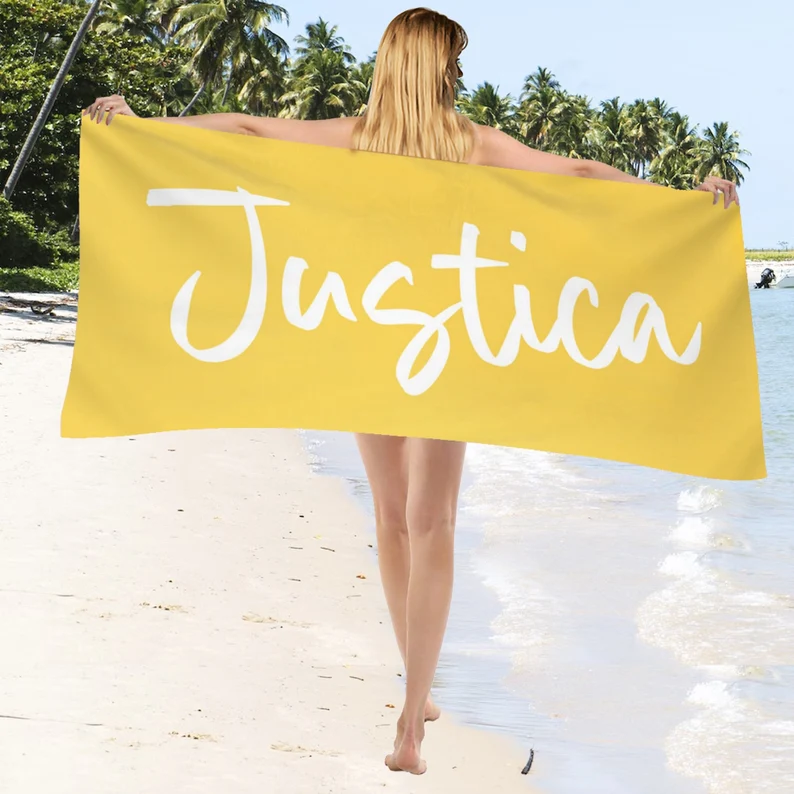 Serviette de plage personnalisée avec nom ludique pour bébé, serviette de bain pour piscine, cadeau de vacances