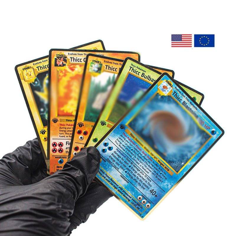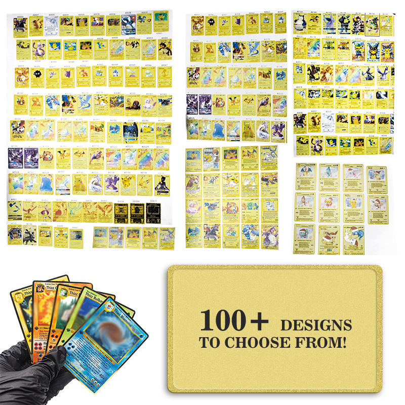 Cartes à jouer personnalisées Poke Mon sans minimum de plaque d'or en acier inoxydable dessin animé mignon cartes à collectionner en métal
