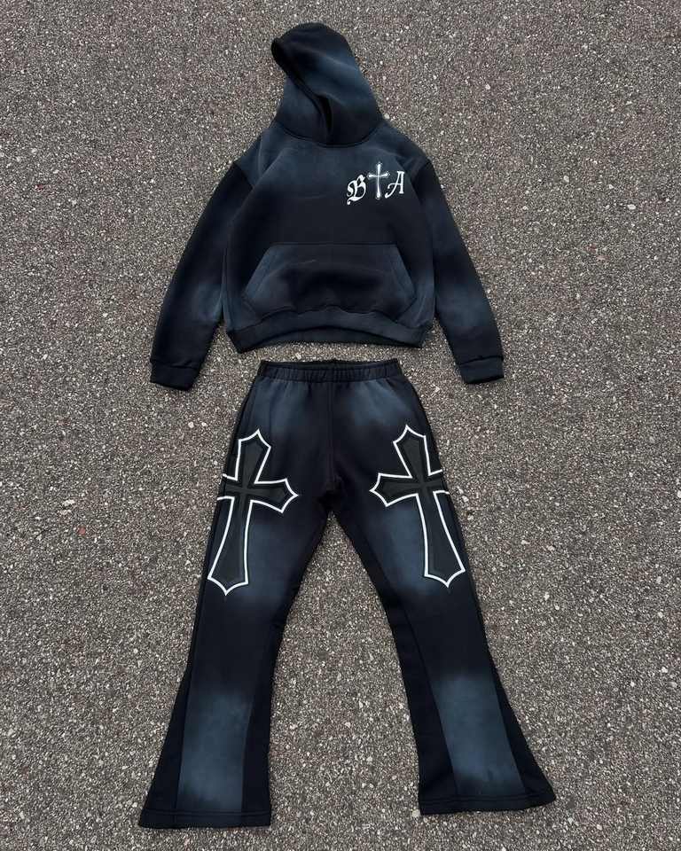 Survêtement pour hommes personnalisé grande taille avec strass camouflage logo imprimé pantalons de survêtement évasés et sweat à capuche ensembles survêtement pour hommes