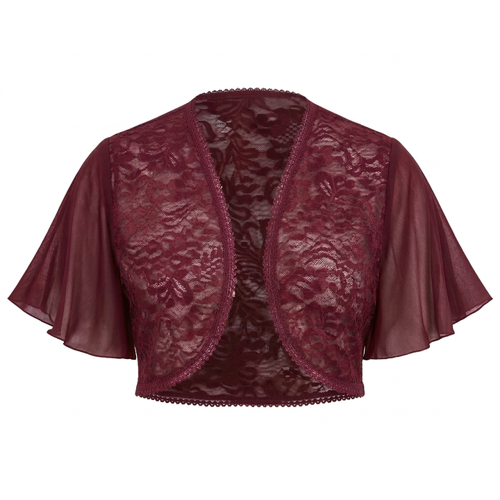 Chemisier en mousseline grande taille personnalisé pour femme, élégant, à manches papillon, boléro en dentelle, crop top translucide