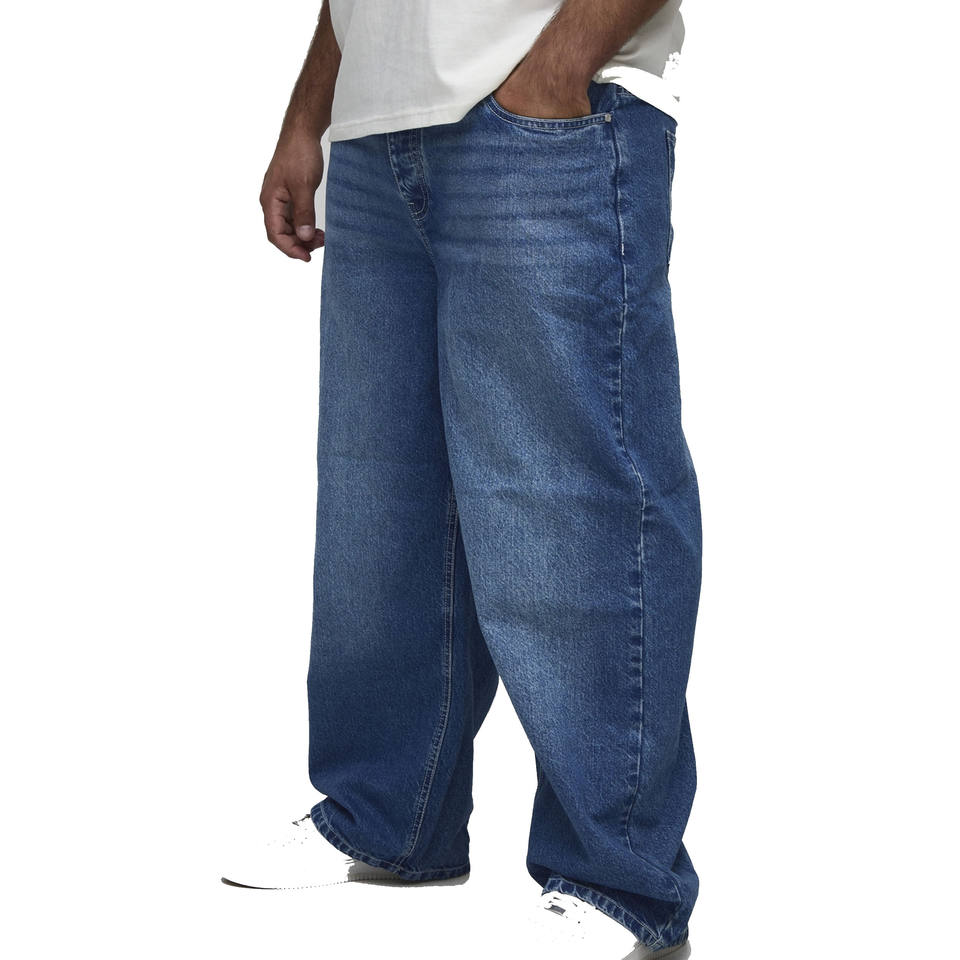Custom Plus Size Men's Baggy Jeans Pants Wide Leg Denim Trouser with Print Pattern Casual High Street Style Summer Wash