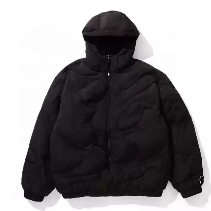 Veste bouffante d'hiver personnalisée pour hommes de grande taille Manteau d'extérieur coupe-vent court à fermeture éclair de style punk noir