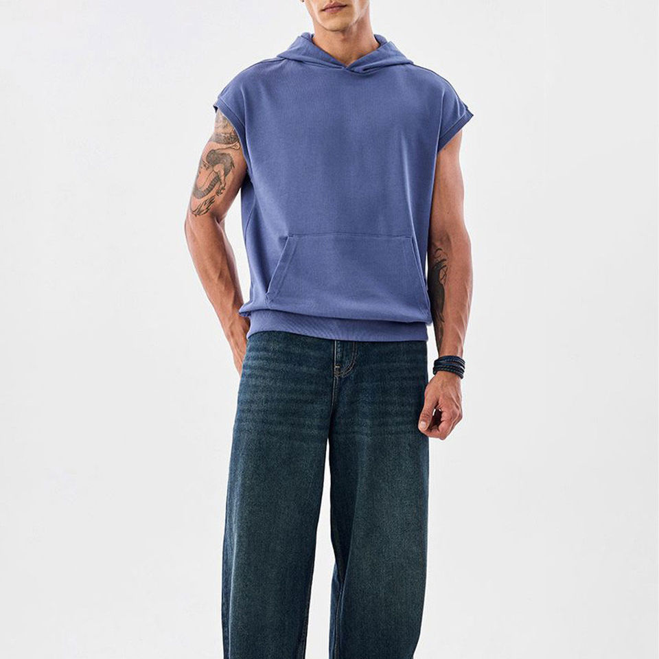 Débardeur de sport à capuche personnalisé pour hommes musclés, grande taille, 100 % coton, pour la gym