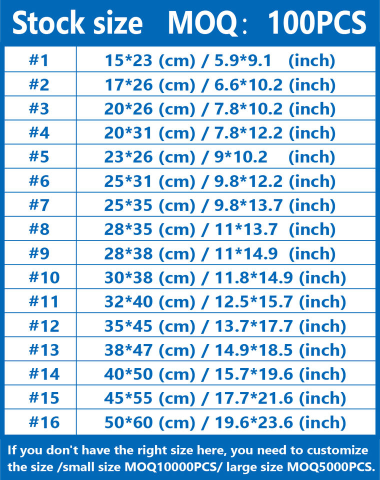 Nom du produit:Sacs d'expédition en polyéthylène/Sacs d'expédition étanches/Sacs d'expédition biodégradables