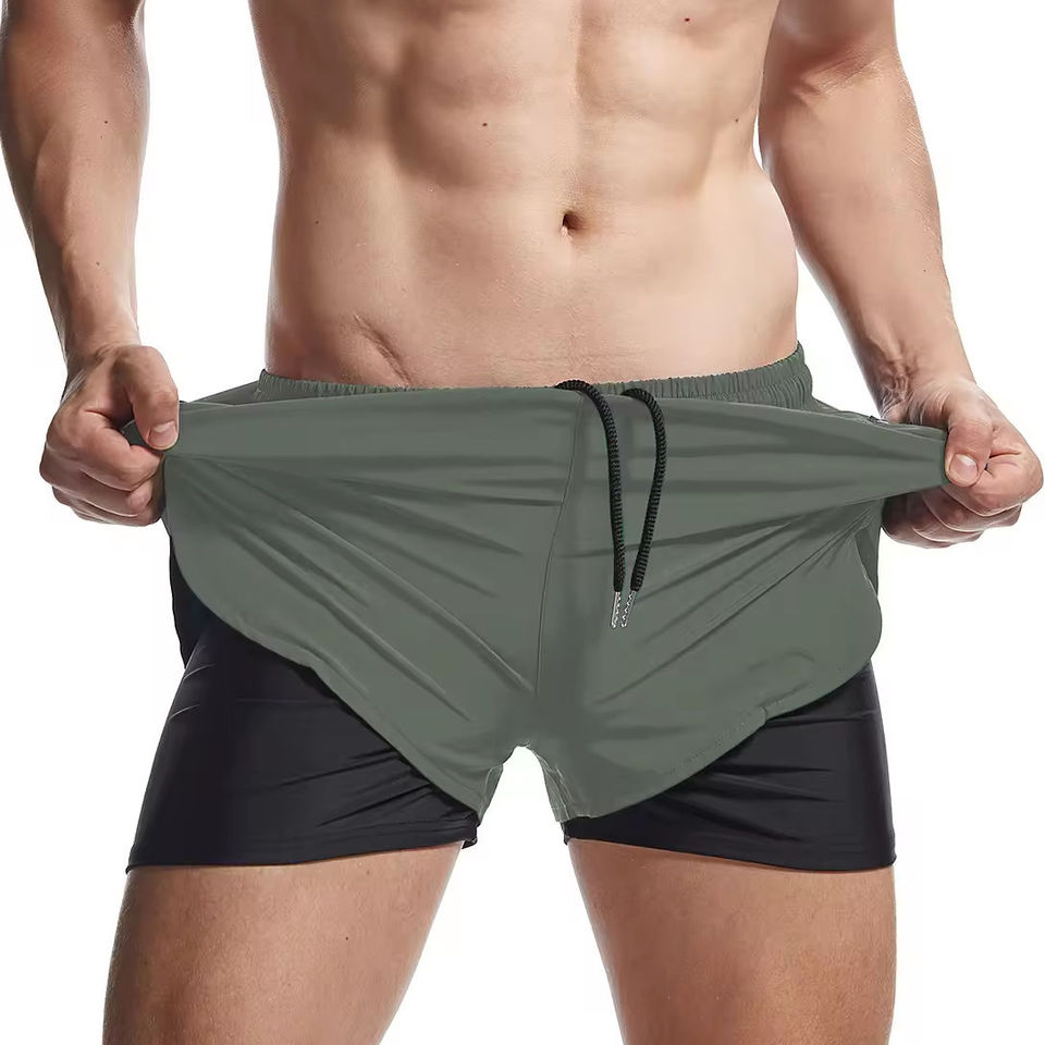 Shorts de sport 2-en-1 personnalisés en polyester pour hommes – Vente en gros, couleur unie, double couche, séchage rapide, pour la course et le basketball