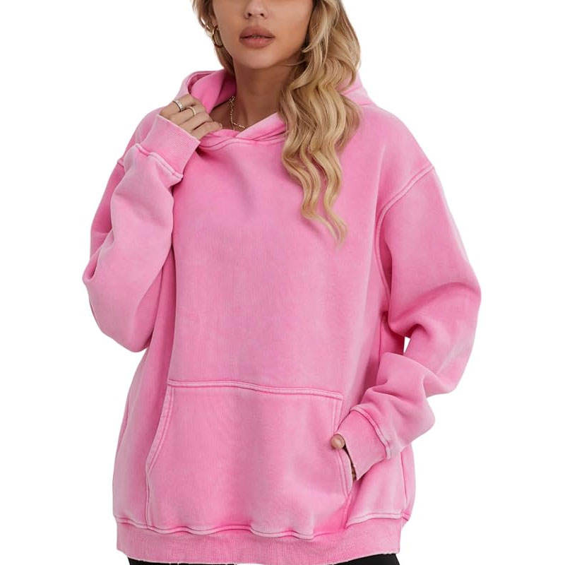 Sweat-shirt unisexe surdimensionné en polyester/coton délavé à l'acide, avec poche, style vintage streetwear, pour l'hiver, poids lourd, fabrication française