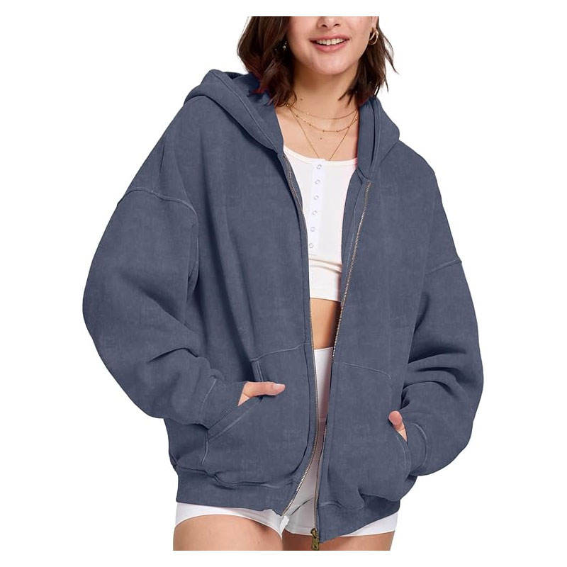 Sweat à capuche unisexe surdimensionné en molleton épais, personnalisé, en polyester/coton, délavé à l'acide, teint uni, style streetwear vintage