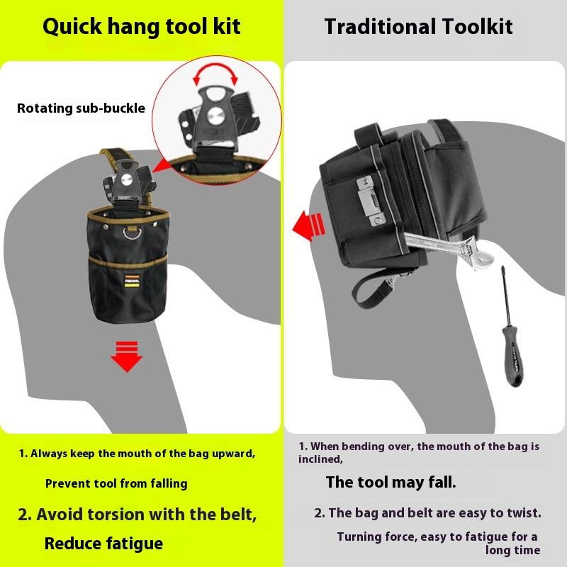 Sac à outils rotatif en polyester personnalisé, fermeture éclair, sac pour pièces électriques, sac à clous pour le travail du bois, sac cylindrique pour la taille