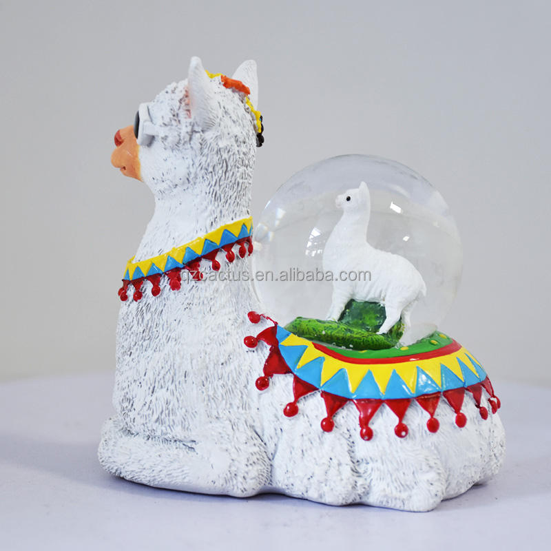Personnalisé polyrésine artisanat animal licorne tortue alpaga eau globe cadeau ornement à la main belle bande dessinée alpaga résine boule à neige