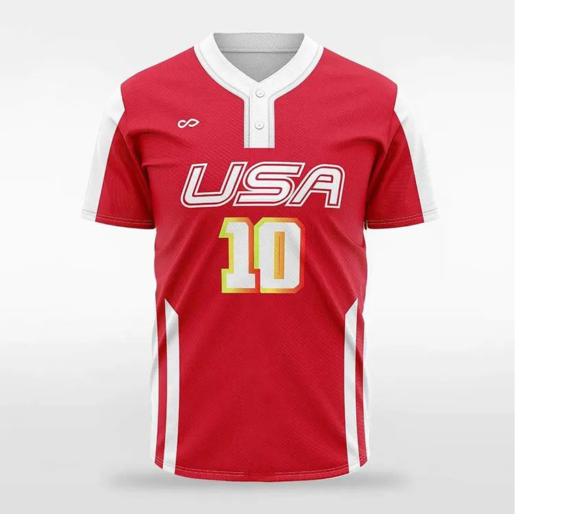 T-shirt de baseball personnalisé en popeline, imprimé numériquement, motif brodé, tendance printemps, maillot de baseball pour homme