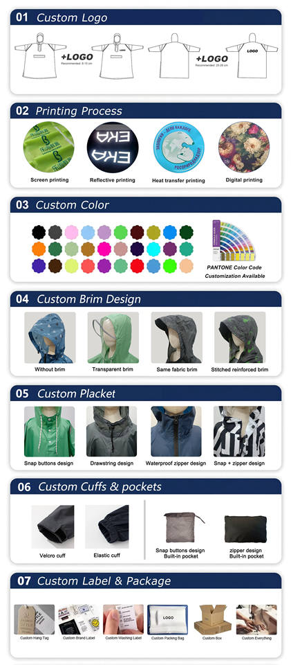 Imperméable à capuche personnalisé et populaire pour adultes Poncho de pluie imperméable et léger à manches longues pour la randonnée, le cyclisme et l'escalade.