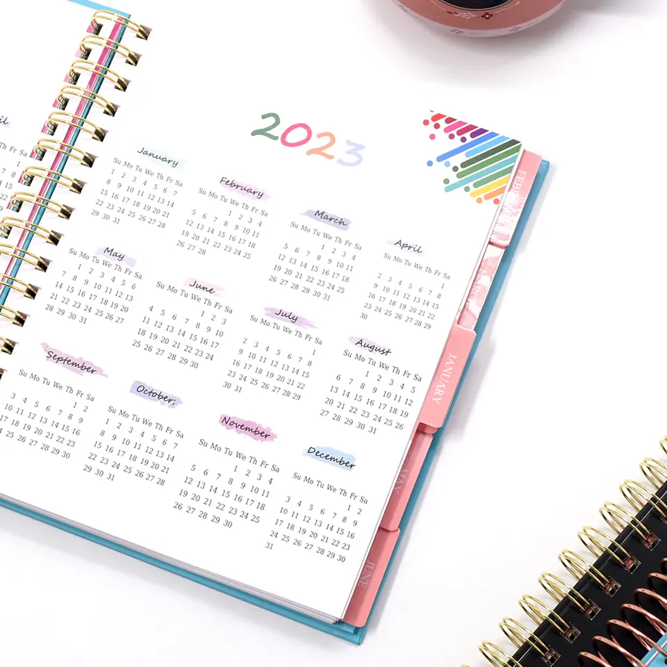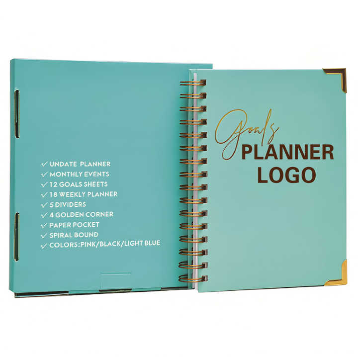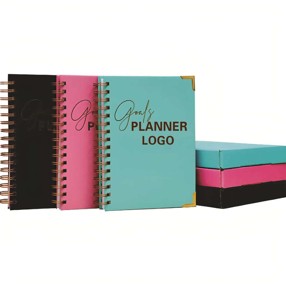 Journal personnalisé populaire spirale or couverture rigide planificateur d'objectif budgétaire A4 A5 impression personnalisée avec coin en métal