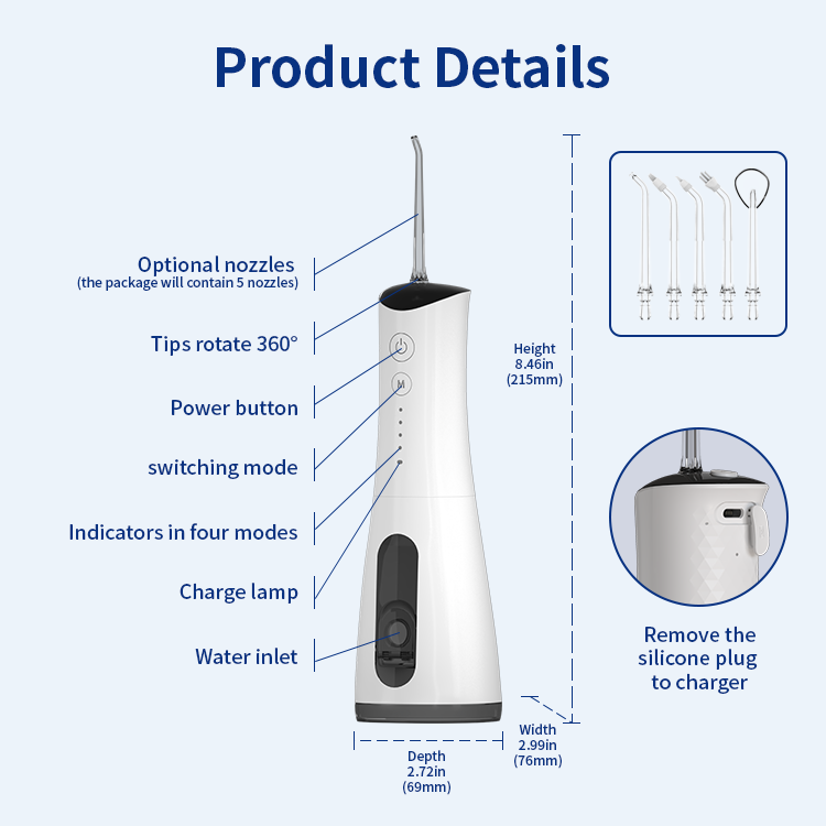 Nom du produit:Hydropulseur dentaire pour adultes - Jet d'eau pour hygiène bucco-dentaire