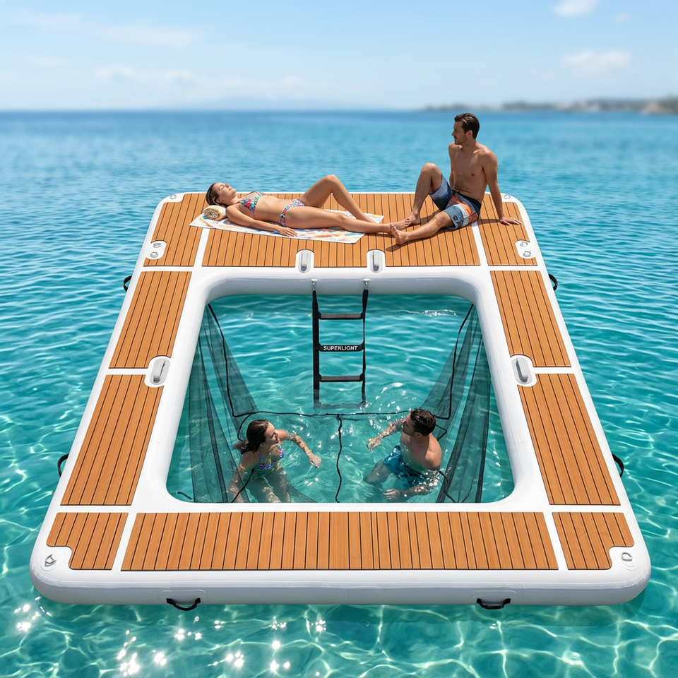 Plateforme flottante gonflable personnalisée pour yacht, piscine de baignade en mer avec filet et revêtement antidérapant en EVA pour la mer