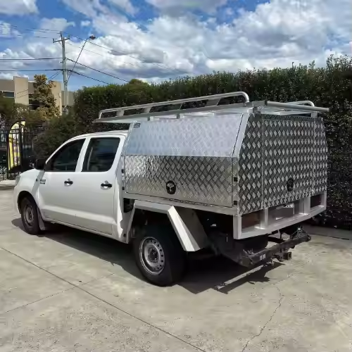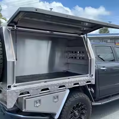 Système de plateau de camionnette portable et robuste pour l'extérieur, avec auvent, en alliage d'aluminium imperméable, boîte à outils de camion verrouillable, rangement tout-terrain