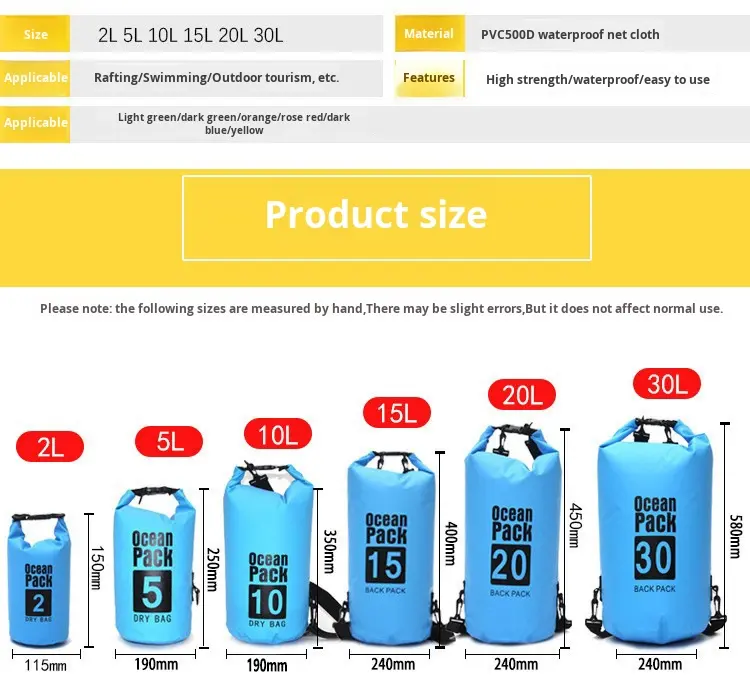Sac de rafting personnalisé portable en PVC pour l'extérieur, serviette en maille imperméable à l'eau pour le camping et la randonnée.
