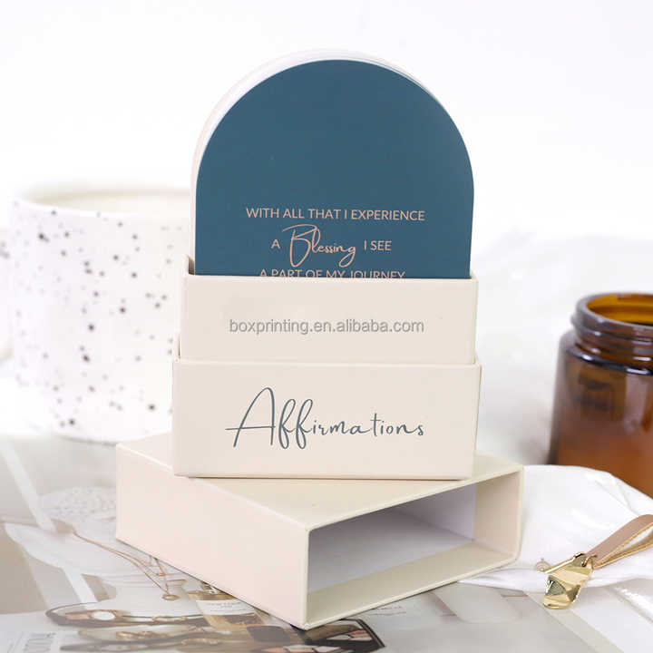 Custom Positive Self Phrases Printing Arch Shape Thinking Gratitude Affirmation Cards with Box and Wooden Block Desk Stand