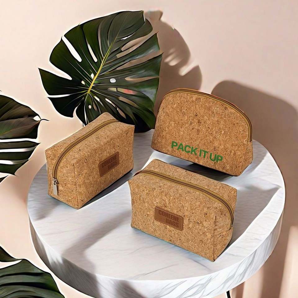 Pochette personnalisée fermeture à glissière sac de maquillage de voyage sac cadeau cosmétique en toile fond en liège