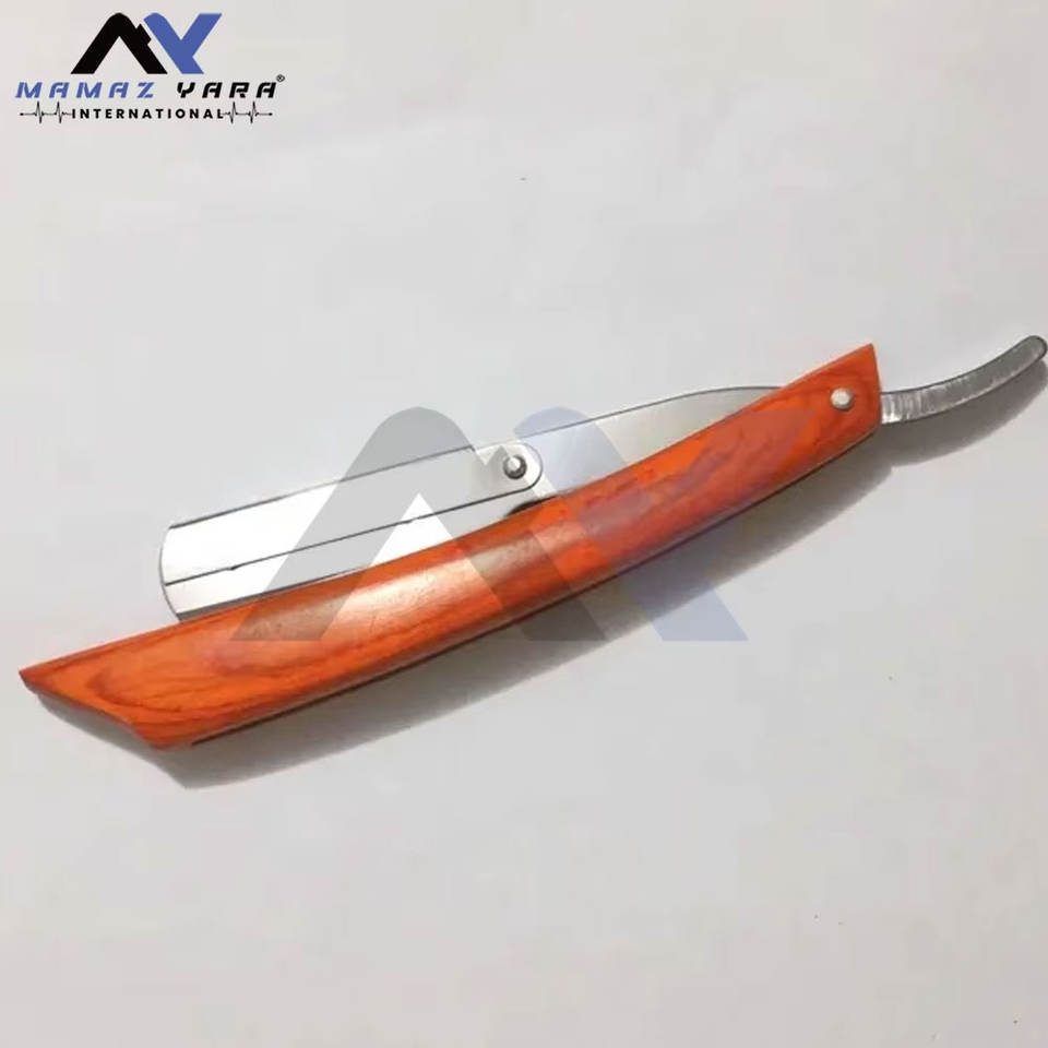Rasoirs en acier personnalisés avec pochette ou logo, couteau de rasage pliant avec manche en bois, rasoir droit, rasoir de barbier
