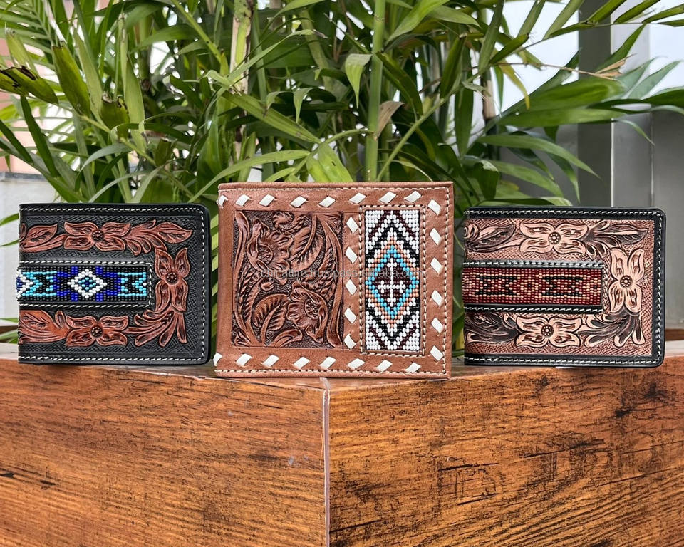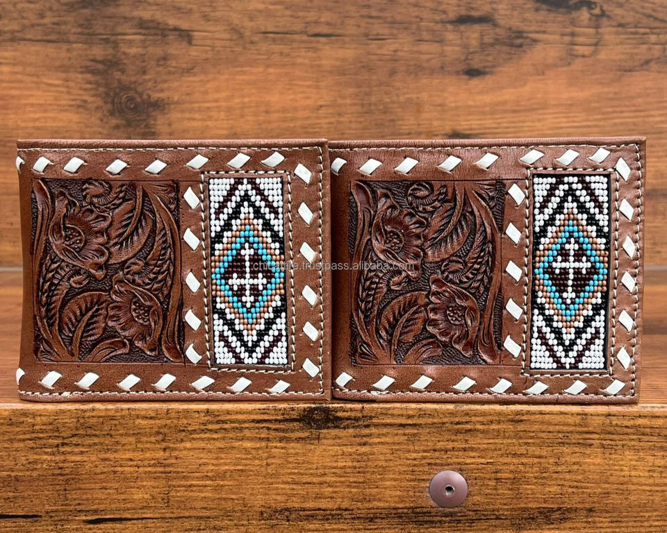 Nom du produit:Portefeuille pliable pour homme en cuir perlé façonné à la main