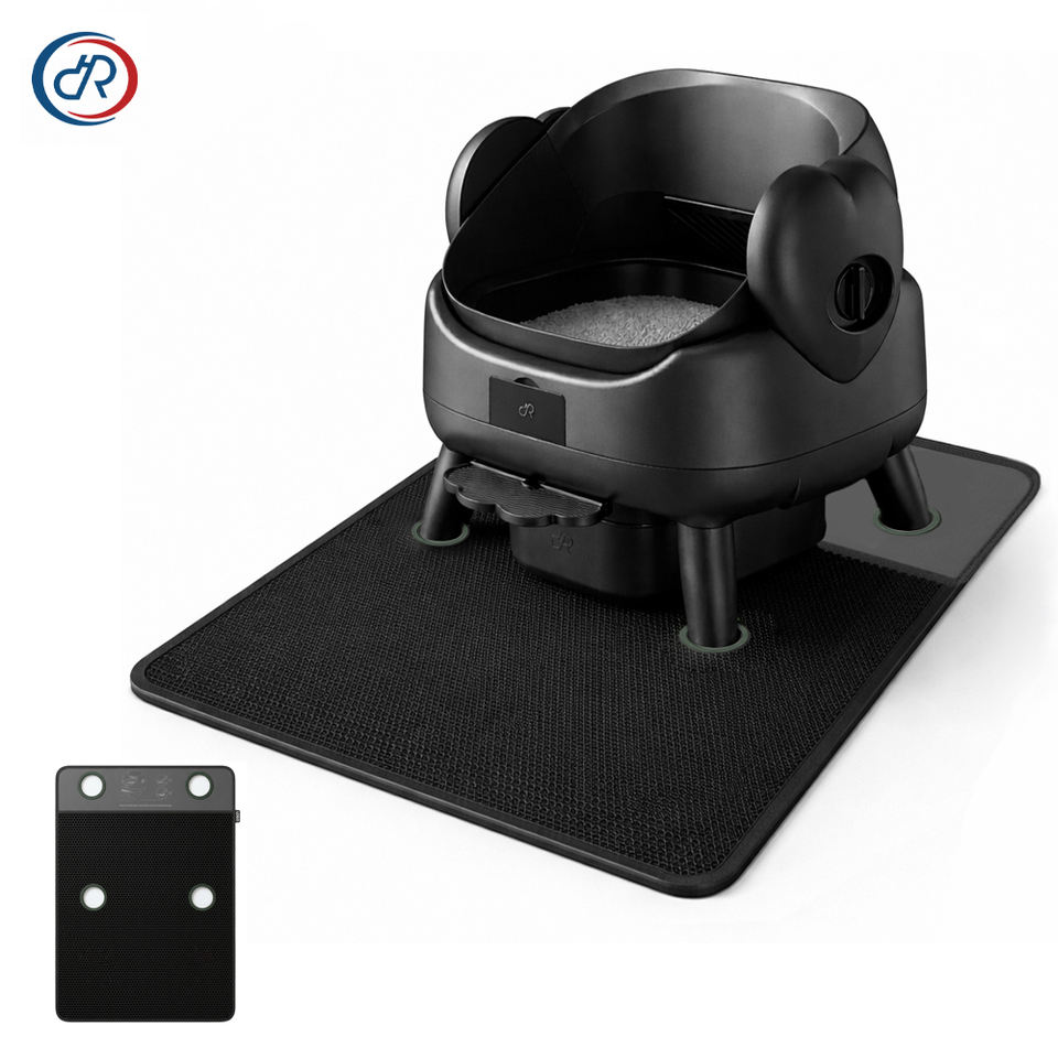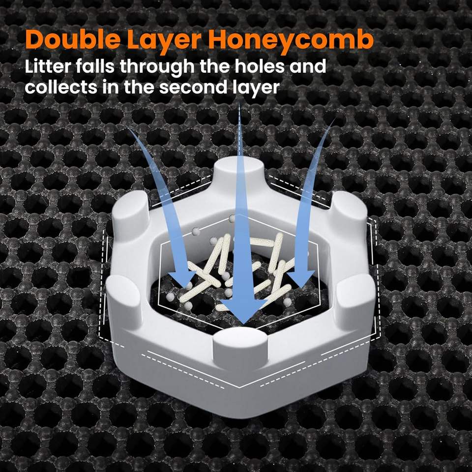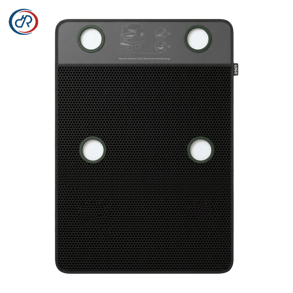 Tapis anti-éclaboussures premium personnalisé pour litières automatiques, conception innovante à 4 trous avec verrouillage des pattes, tapis double couche en nid d'abeille pour chat