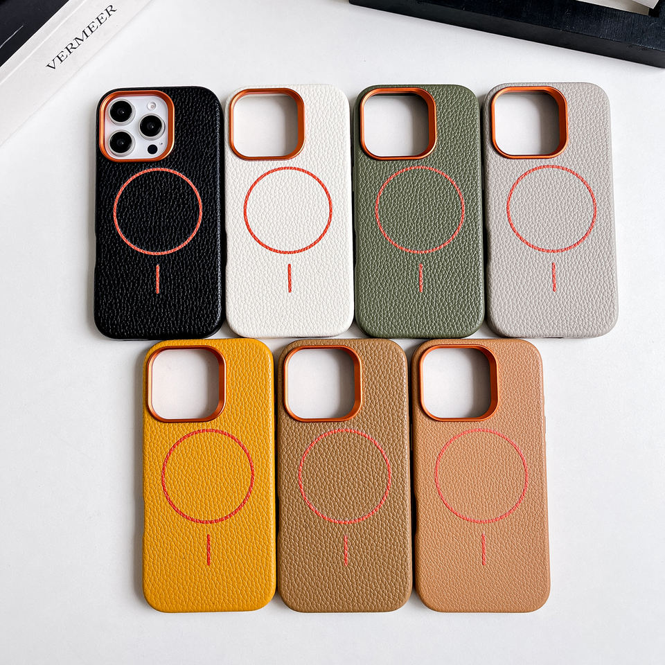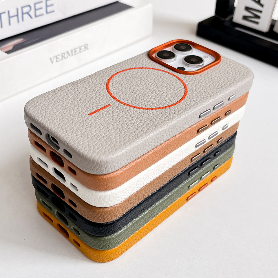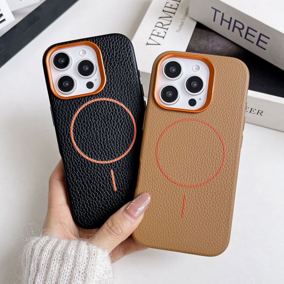 Coque Magnétique Personnalisée Haut de Gamme Luxe en Cuir PU Grainé à Finition Galet Anti-Choc pour iPhone 15 Pro Max 17 16 14 13