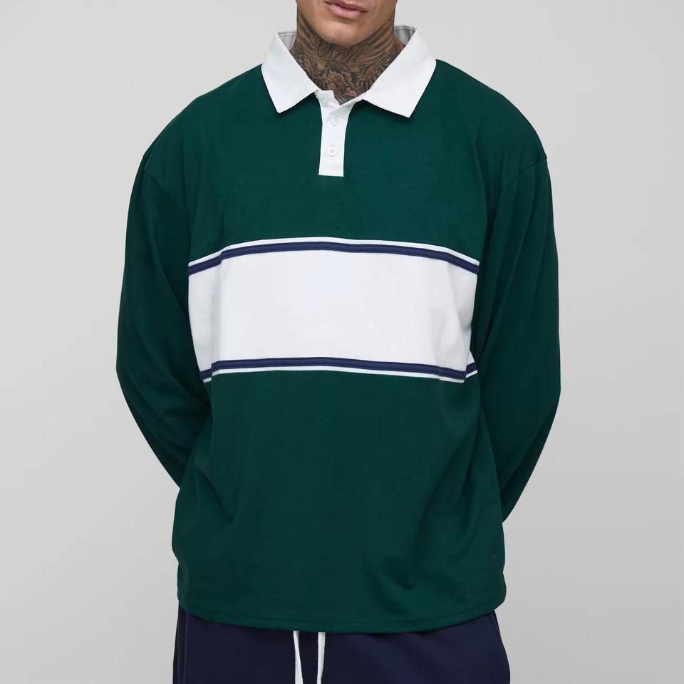 Chemise de rugby à rayures personnalisée de style preppy pour hommes, chemise de sport à manches longues à rayures cousues, style polo de rugby pour hommes