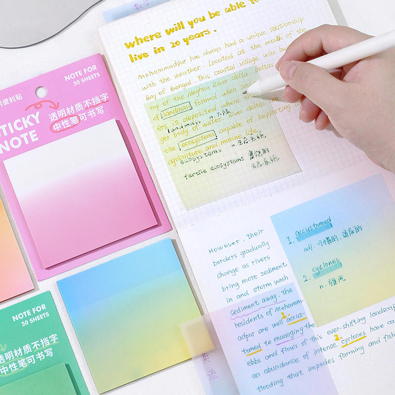Personnalisé Prix Pas Cher 3*4 Pouces It Note Post Étudiant Posted It Transparentes Couleur Étiquette Autocollants Logo Imprimé Livre Page Marqueur