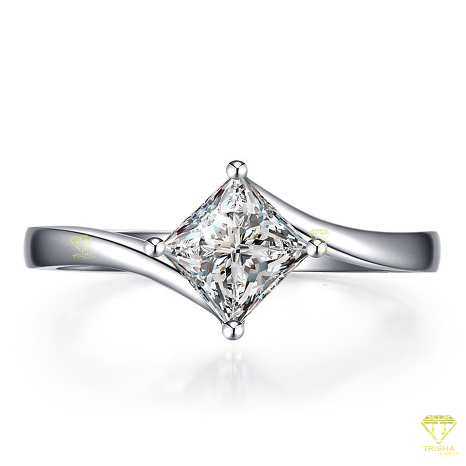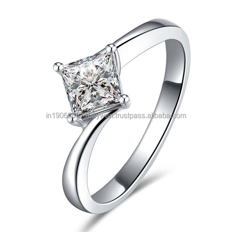 Bague de fiançailles de laboratoire personnalisée coupe princesse bijoux de mariage solitaire classique pour femmes en argent sterling