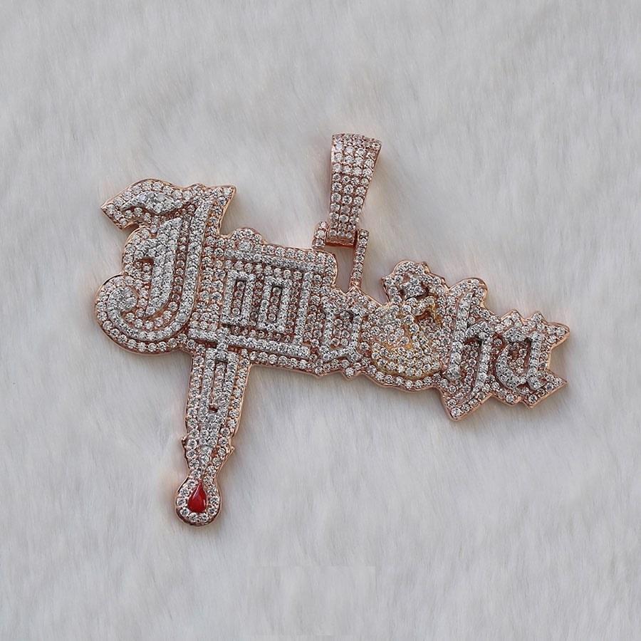 Pendentif personnalisé en argent sterling plaqué or style hip-hop avec moissanite véritable taille princesse VVS