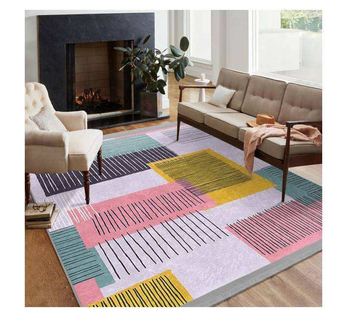 Tapis géométrique abstrait imprimé sur mesure, vente en gros directe d'usine, tapis moderne, faible MOQ, lavable en machine, tapis de salon, style mi-siècle