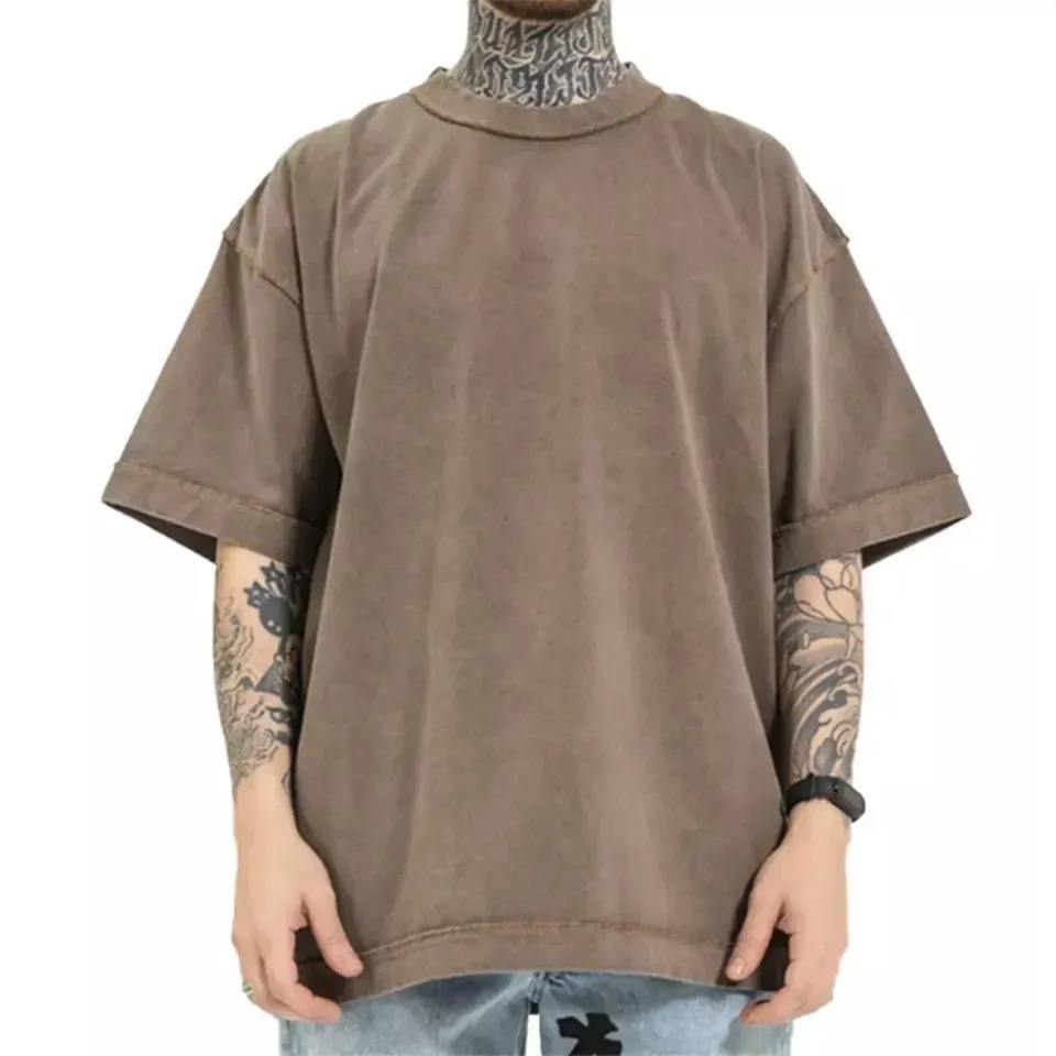 T-shirt vierge à imprimé personnalisé et épaules tombantes 100% coton lavé à l'acide T-shirt Boxy lourd et surdimensionné Chemises en tissu