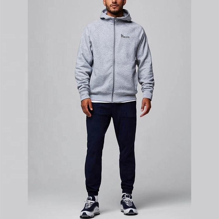 Sweat à capuche zippé personnalisé de haute qualité, coupe classique, poignets élastiques, poche zippée, décontracté, sans cordon, en coton et polyester pour homme