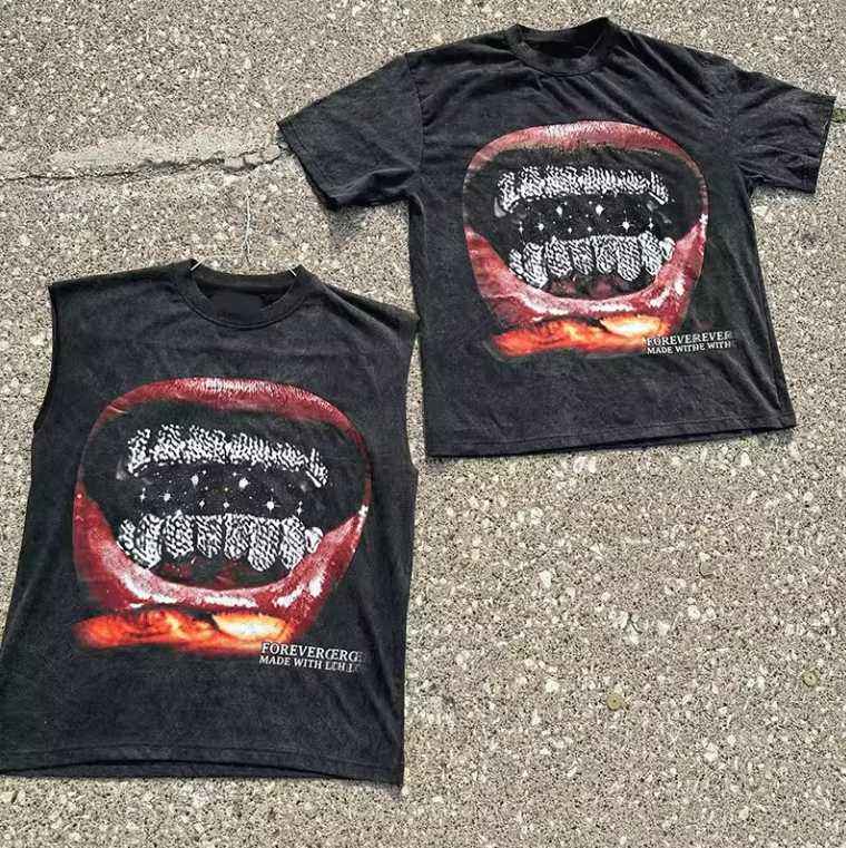 T-shirt graphique à logo imprimé personnalisé T-shirts à col rond sans manches vintage surdimensionnés et lourds et délavés à l'acide de haute qualité pour hommes